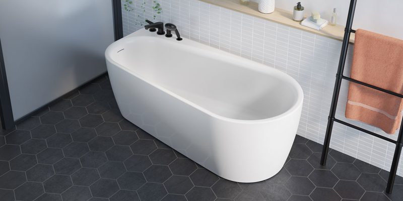 • Freestanding tub: Pairs well with floor-mounted or wall-mounted faucets